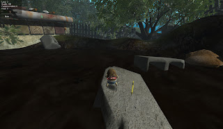 In this screen capture you can see Bud the Spud has made his way onto the cinder block in the middle of the deadly mud bog and is about to grab the final key. I made these jumps a lot simpler as I know retrieving the first key from the mud bog located across the paving stones is a much more difficult jump series, getting across the first few rocks is no problem but landing on that toadstool in the middle of the bog takes a bit of practice I found. So I figured I'd give my players a bit of a break with this 2nd key retrieval scenario. There is one more mud bog to cross on the way to the exit pipe which I've still yet to work out. I'm thinking maybe perhaps a grungy wooden board in front of the pipe like a crude wall with a small door located at the mouth of the pipe with crudely painted text that says "EXIT."