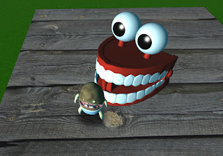 I've been putting the final touches on the code for the "Chattering Toy Teeth" character. It's almost done, just fine tuning it to match up with sounds and working out the characters death setup for when Bud the Spud jumps on him. I'm making him similar to the Potato Beetles in that it will take Bud two jumps to defeat this enemy. Because he has a top and lower jaw section I'm not sure how that will workout but I'm sure I'll figure it out.